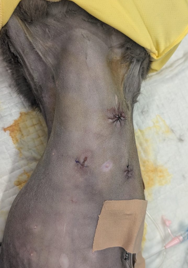 • エリザベスカラーの装着(傷を舐めないように)